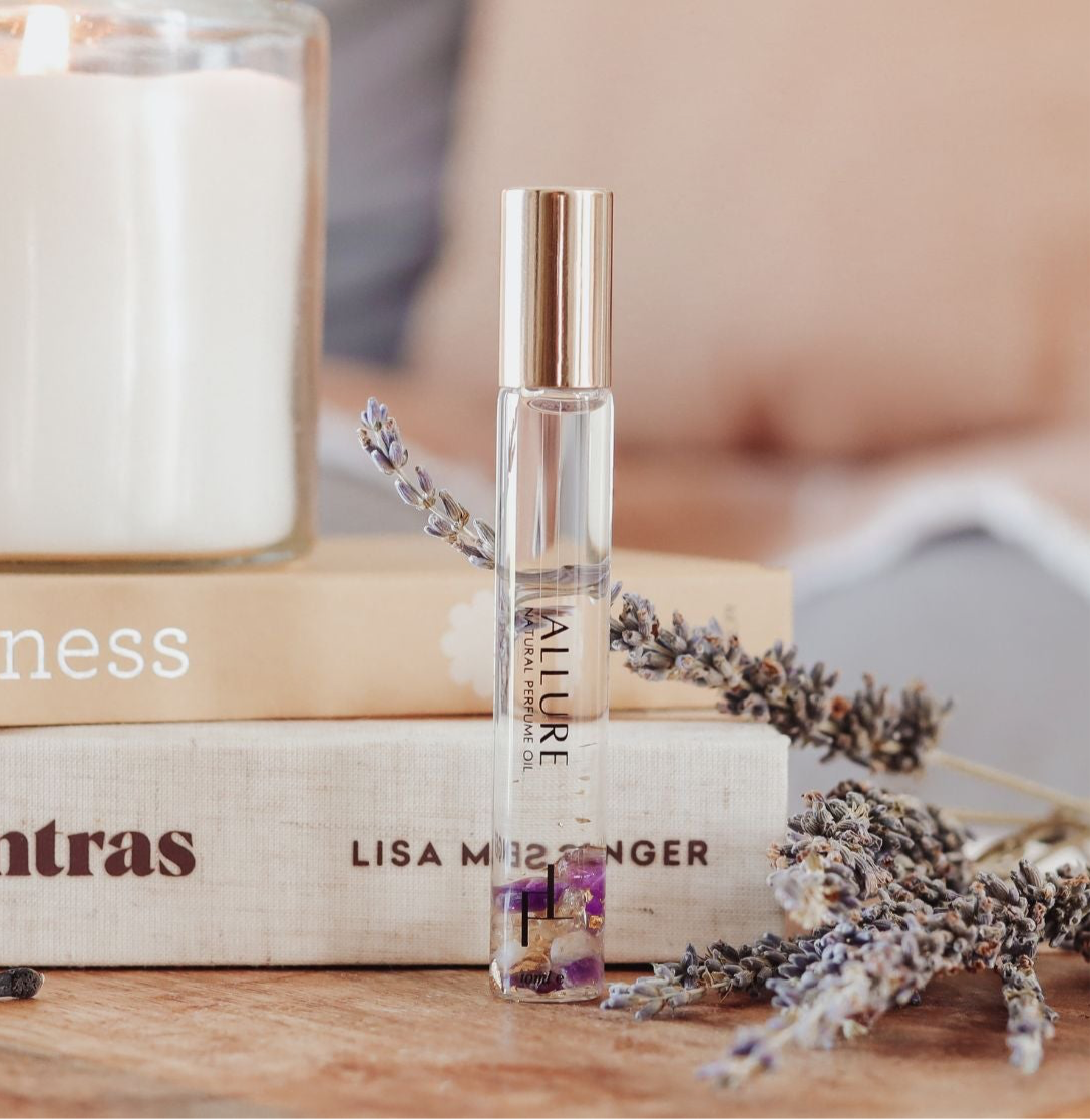 ALLURE captures the scent of a spring meadow, where flowers dance in the wind and the earth radiates warmth. A floral-earthy blend of lavender, geranium, and clary sage, balanced by sweet ylang ylang and grounded in frankincense, patchouli, and Australian sandalwood.
