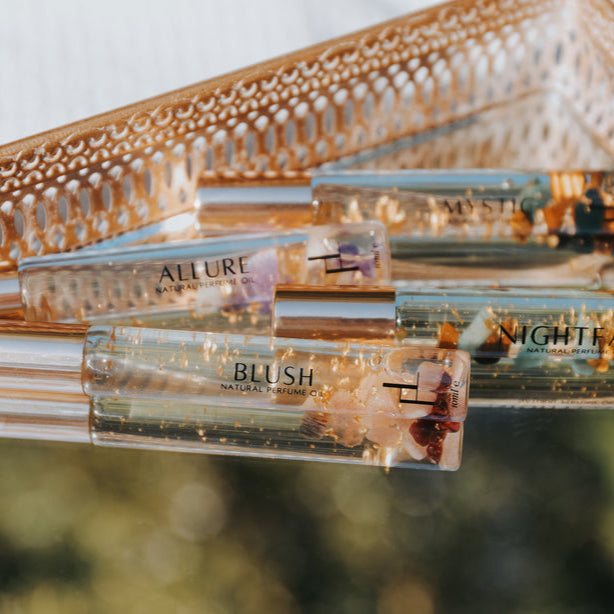 Elevate your scent experience with our Signature Collection, featuring six enchanting crystal-infused natural perfumes. Each fragrance is a masterpiece, hand-blended with pure botanicals, precious crystals, and 24k gold to embody a unique essence of nature and spirituality.